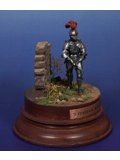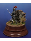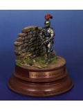 This is a historical miniature that has been painted by the master Stelios Demiras a few years ago. It portrays an Italian Knight c. 1450. It is coming from Andrea Miniatures 54mm (SM-F08). It is painted with oil paints over the polished metal. The figure is made from metal. The figure is strongly fitted to a wooden varnished base and has a scratchcbuilt stone wall and groundwork.