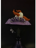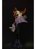 The bust itself was made of high-quality resin with exceptional sculpting and detail. I took great care on correcting any imperfections from casting, carefully primed the figure and finally painted it with high quality acrylic paints, mostly in Lila tones. The model is fitted on a stand decorated with skulls painted in pearl-effect purple colour, which is strongly attached on a black varnished wooden base of high quality, decorated by a paper sign with the theme printed on it. It is a one-of-a-kind item, almost impossible to find painted in the market. (The kit alone costs about €80 and consists of 12 pieces)